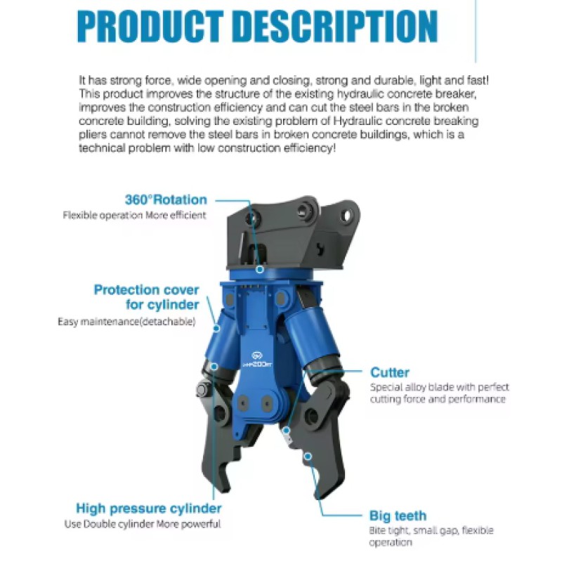 Please check the following concrete crusher hydraulic pulverizer specifications to choose the right grab model