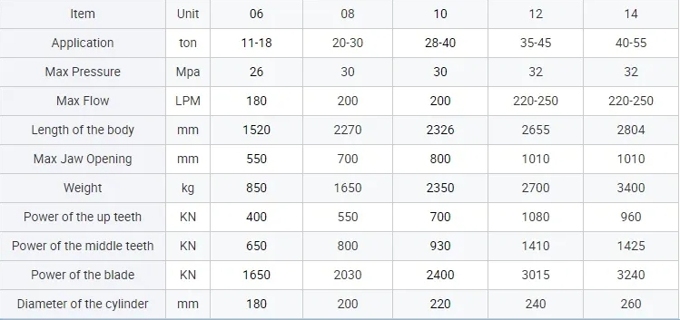 Please check the following concrete crusher hydraulic pulverizer specifications to choose the right grab model